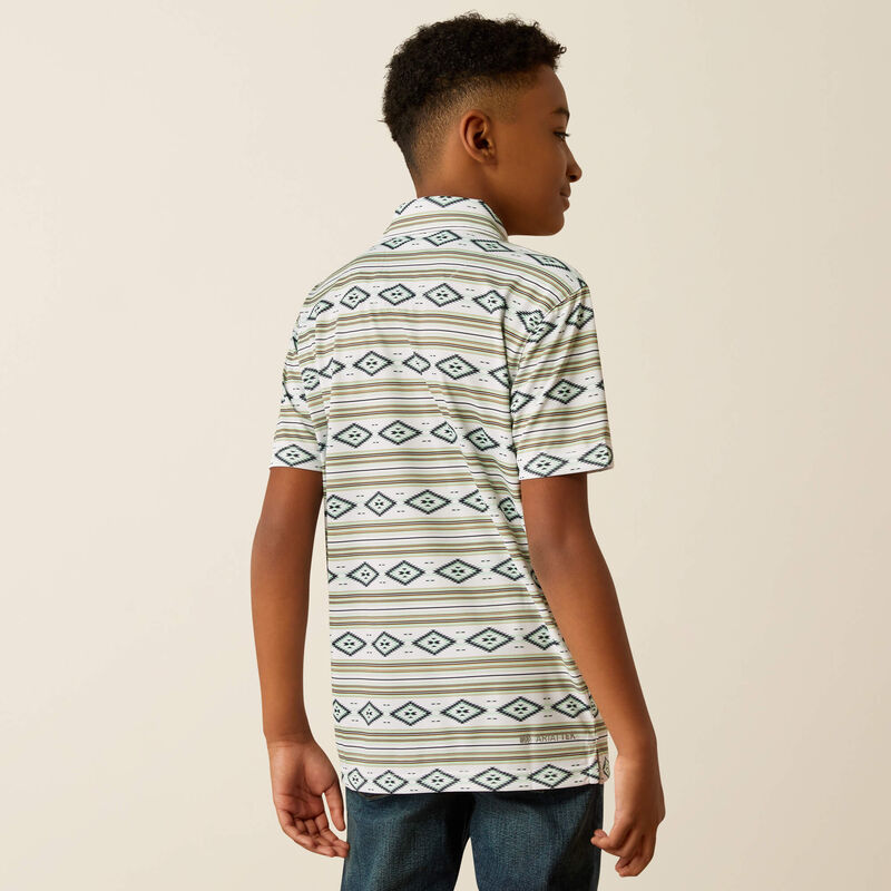 Get your son looking sharp and feeling comfortable in this Ariat® All Over Print Polo. Made with cooling and sweat-wicking fabric, it's perfect for school, golfing, or any summer event. With a stylish design, he'll be just as sharp as Dad!