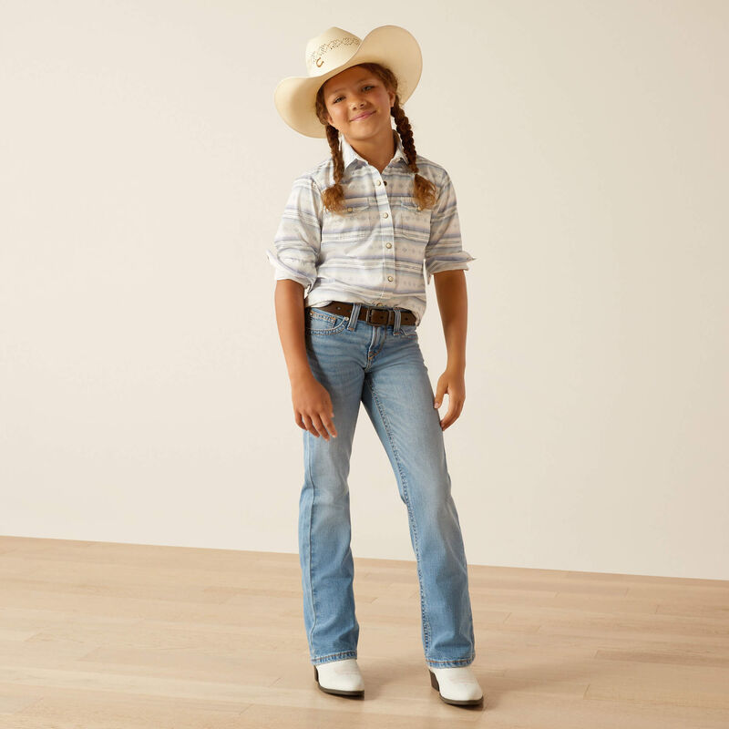 Designed for the aspiring rodeo star, the Ariat® Girl's Alyssa Shirt 10055292 offers a perfect blend of Western style and Southwestern flair. Its classic button-up design makes it ideal for both school and the barn. With an effortless fit, this shirt is perfect for everyday wear.