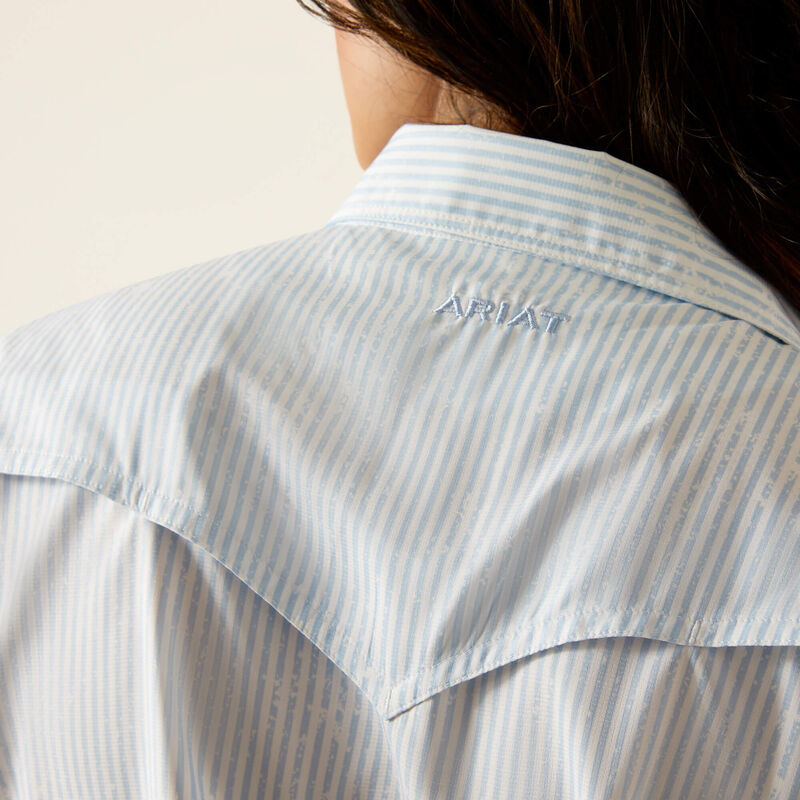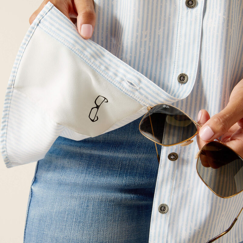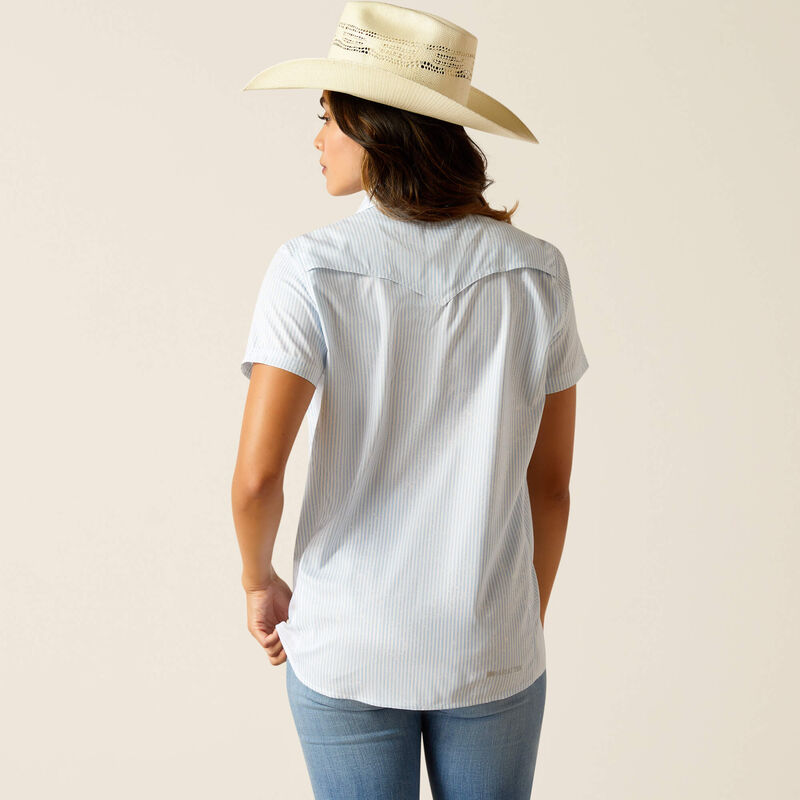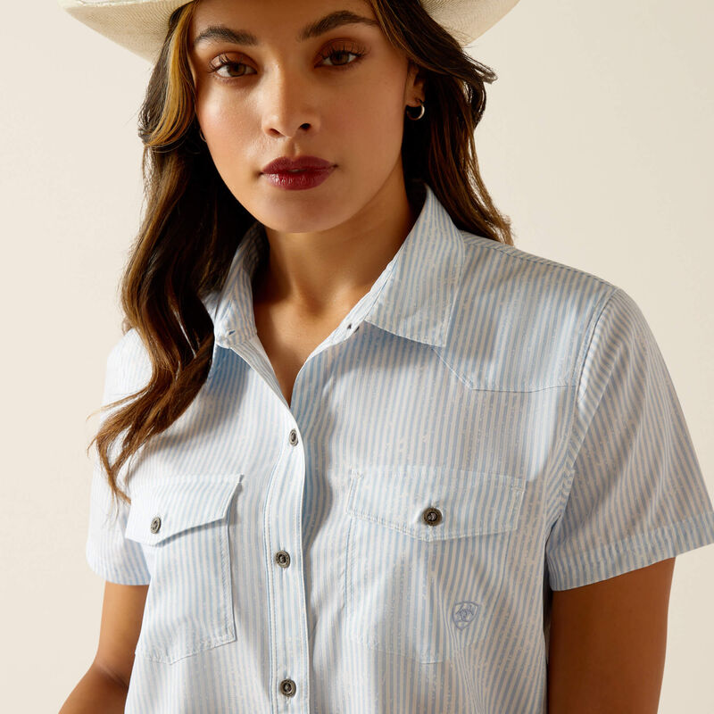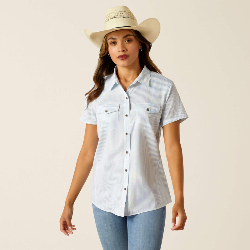 Upgrade your western wardrobe with Ariat® Women's Western VentTEK Short Sleeve Shirt. Designed with distressed stripes, this shirt not only adds a touch of style, but also features VentTEK technology to keep you dry and comfortable. And with UV coverage, this shirt is perfect for all-day wear.