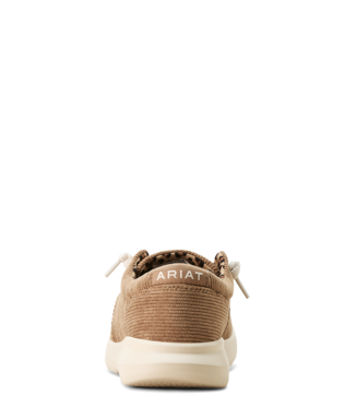 These Ariat® Women's Tan Corduroy Hilos 10053703 shoes are made with high-quality fabric, leather, or suede upper for comfort and durability. The mesh lining and elasticized laces provide a secure fit, while the open cell cushioning insole ensures all-day comfort. The lightweight FLX Foam™ outsole offers excellent traction and stability, with the option for a unique colored or printed sole. Full Vamp design completes the stylish look.