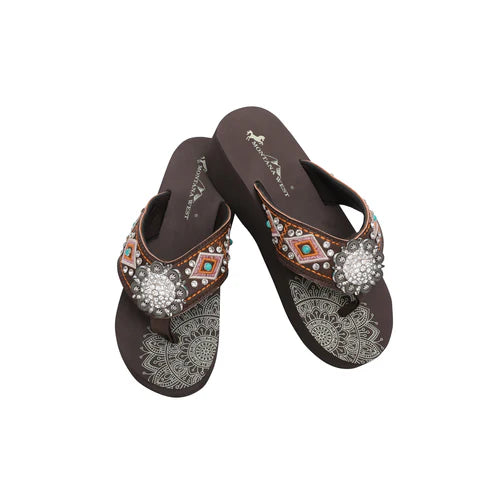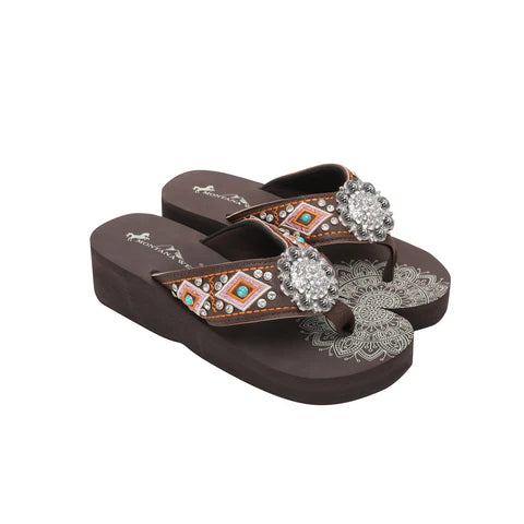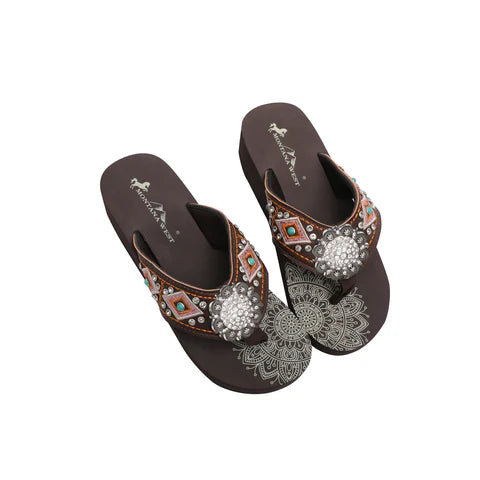 Montana West® Women's Mandala Silver Floral Rhinestones Concho Embroidered Wedge Flip-Flops SE107-S001CF