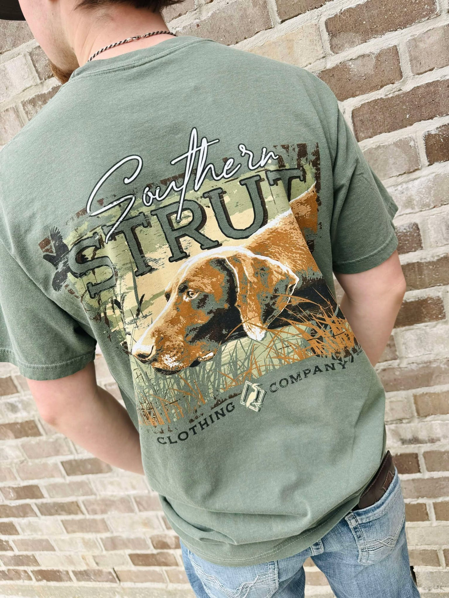 Southern Strut Brand® Men's Quail and Pointer Moss Green T-Shirt ST#616