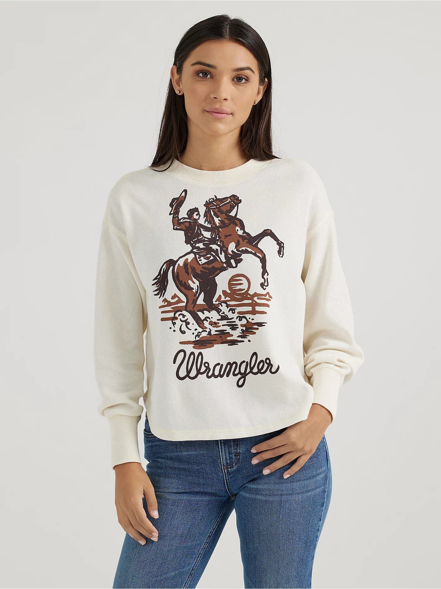 Wrangler® Women's Bucking Cowboy Waffle Thermal Shirt 112356698