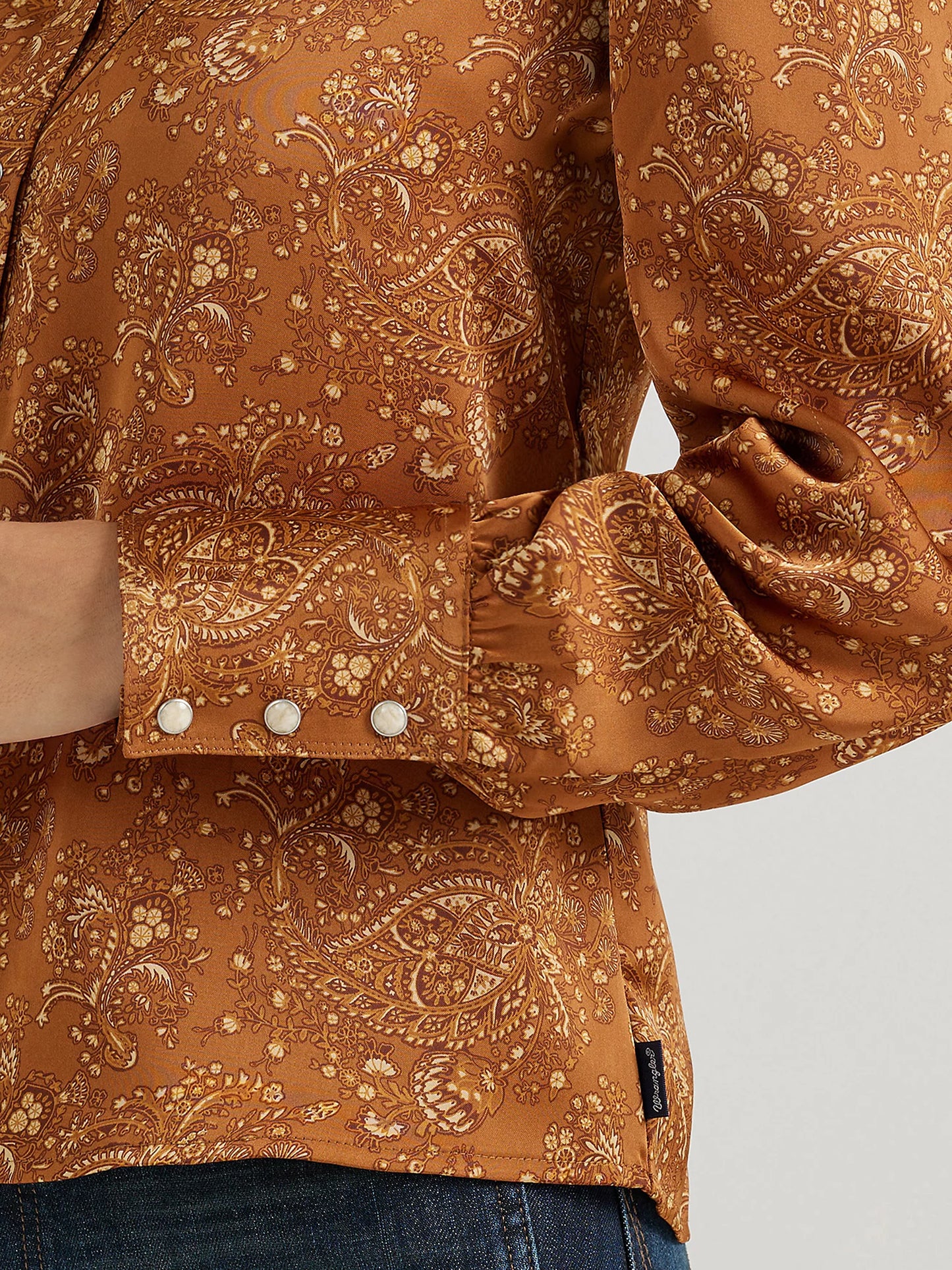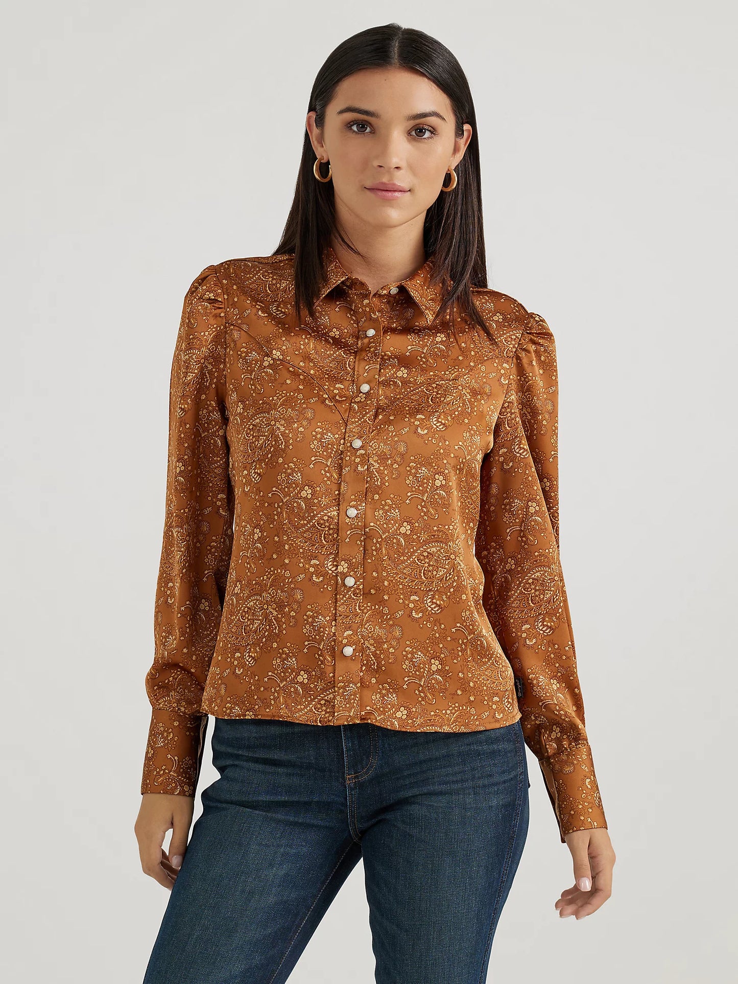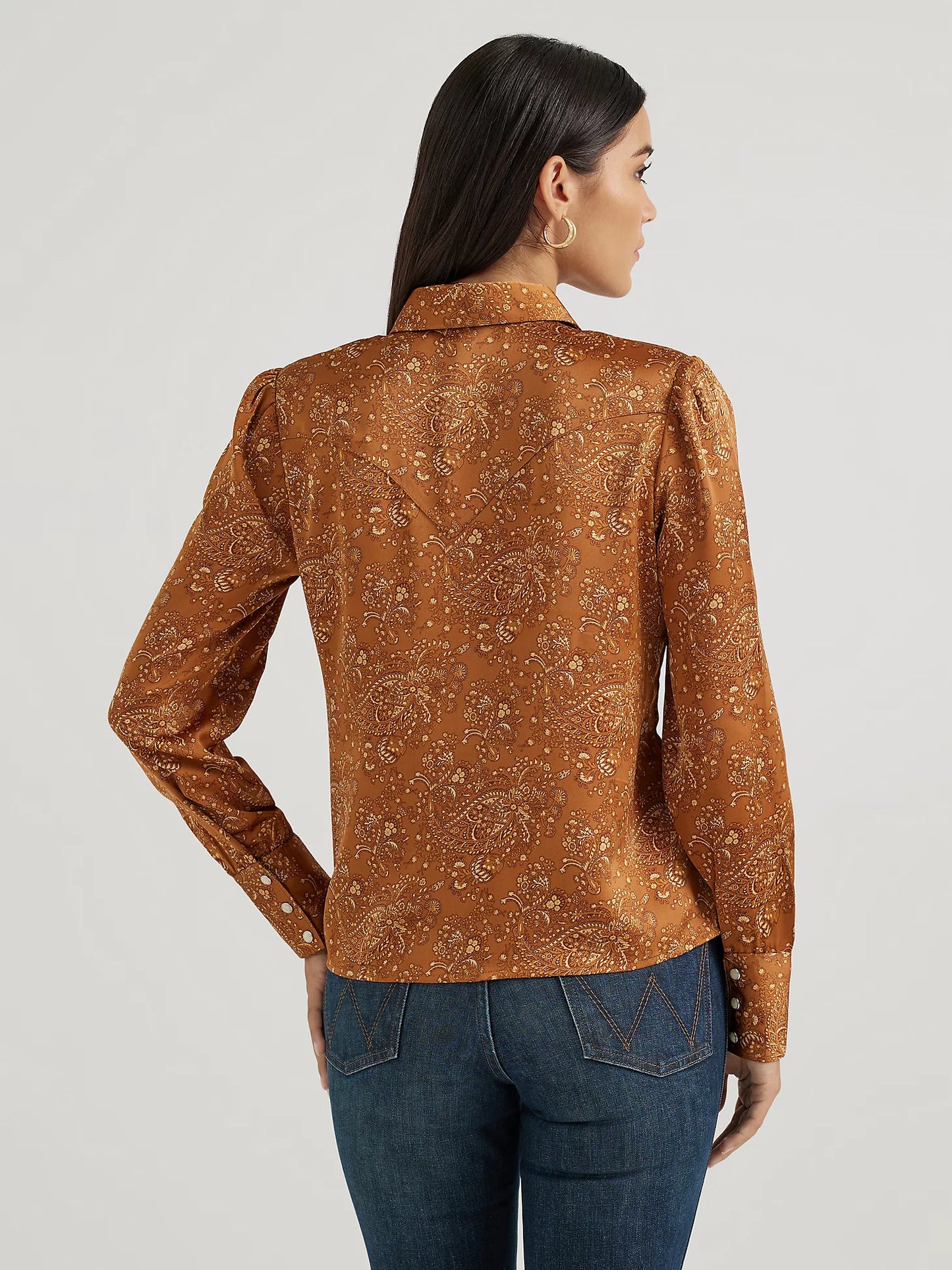 Wrangler® Women's Satin Rodeo Blouse in Brown 112356672
