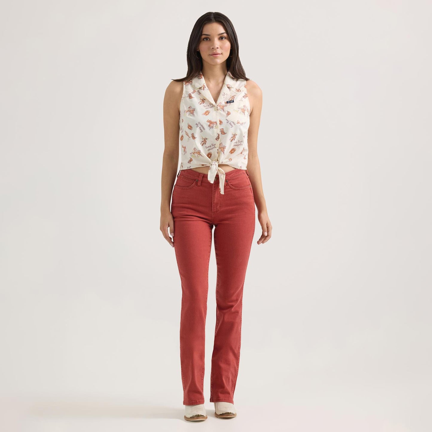 Introducing the Wrangler Retro® Punchy Top - a stylish addition to your wardrobe. Made with a high-quality blend of 70% US cotton and 30% cotton poplin, this button-front shirt offers both comfort and durability. The trendy tie detail adds a touch of sophistication to this versatile piece from the Wrangler® Fashion collection.