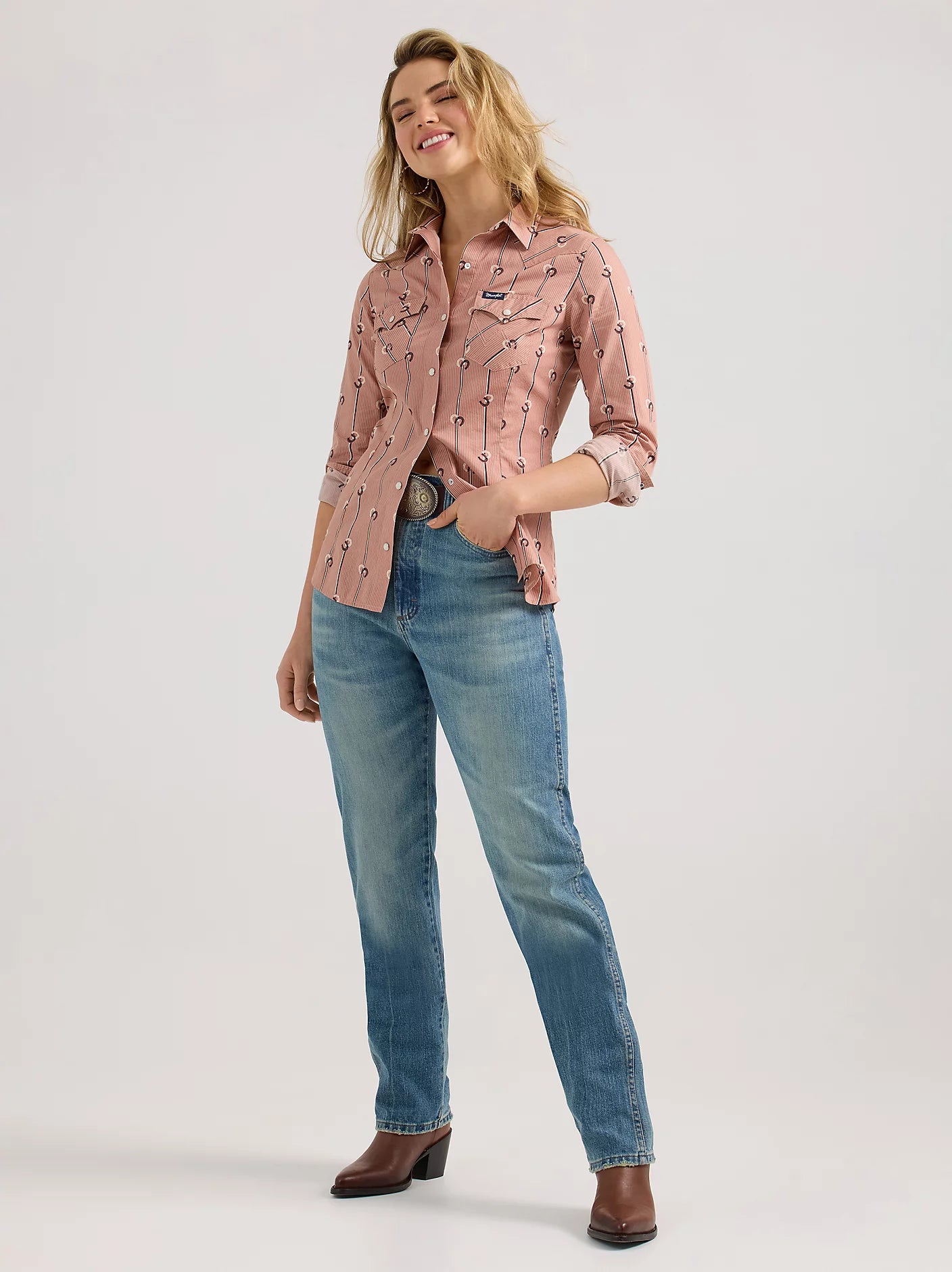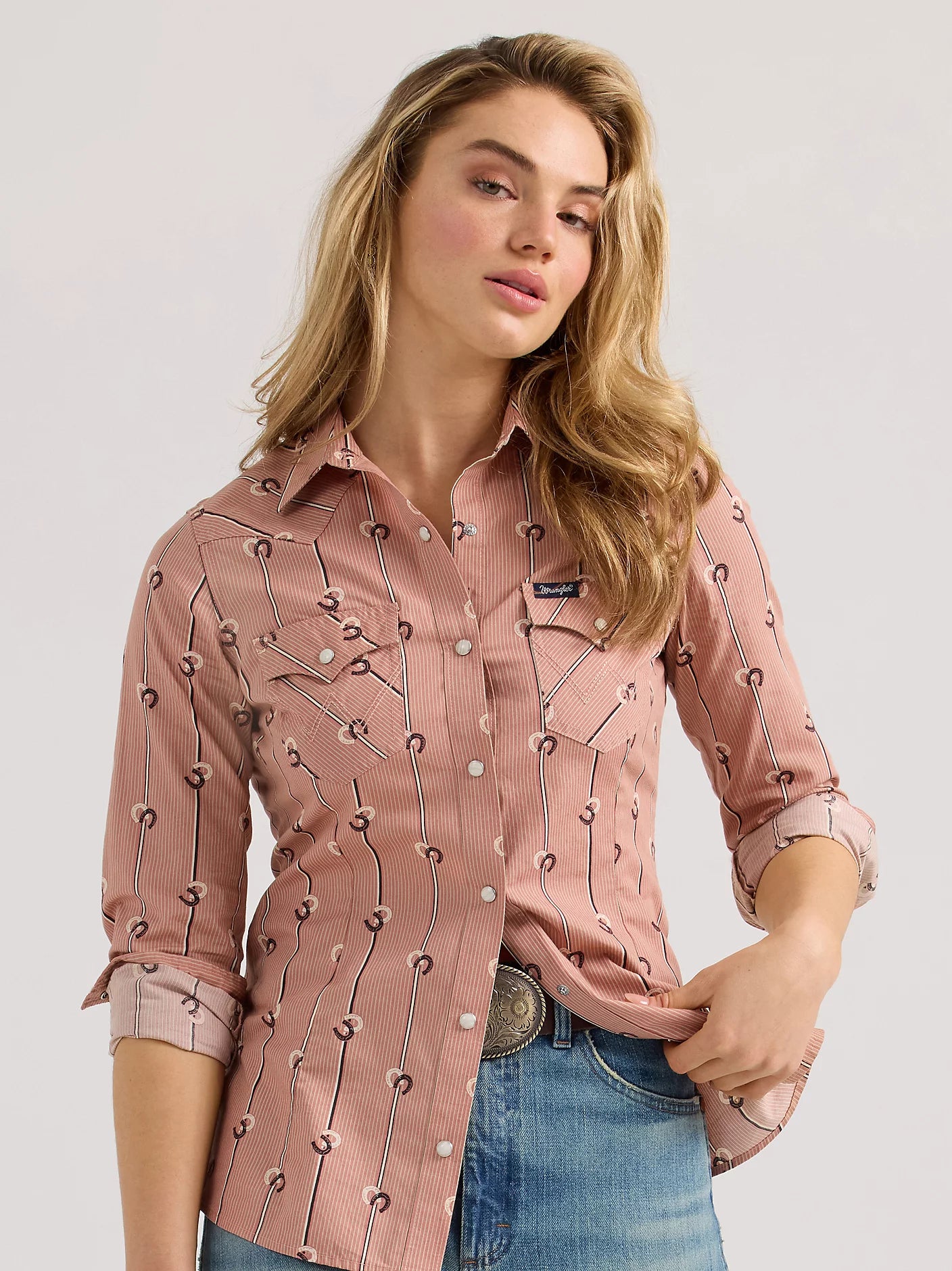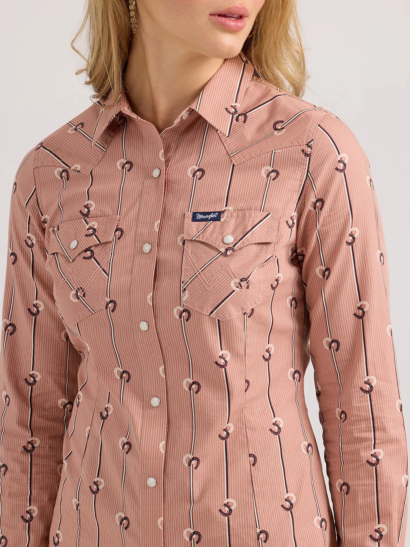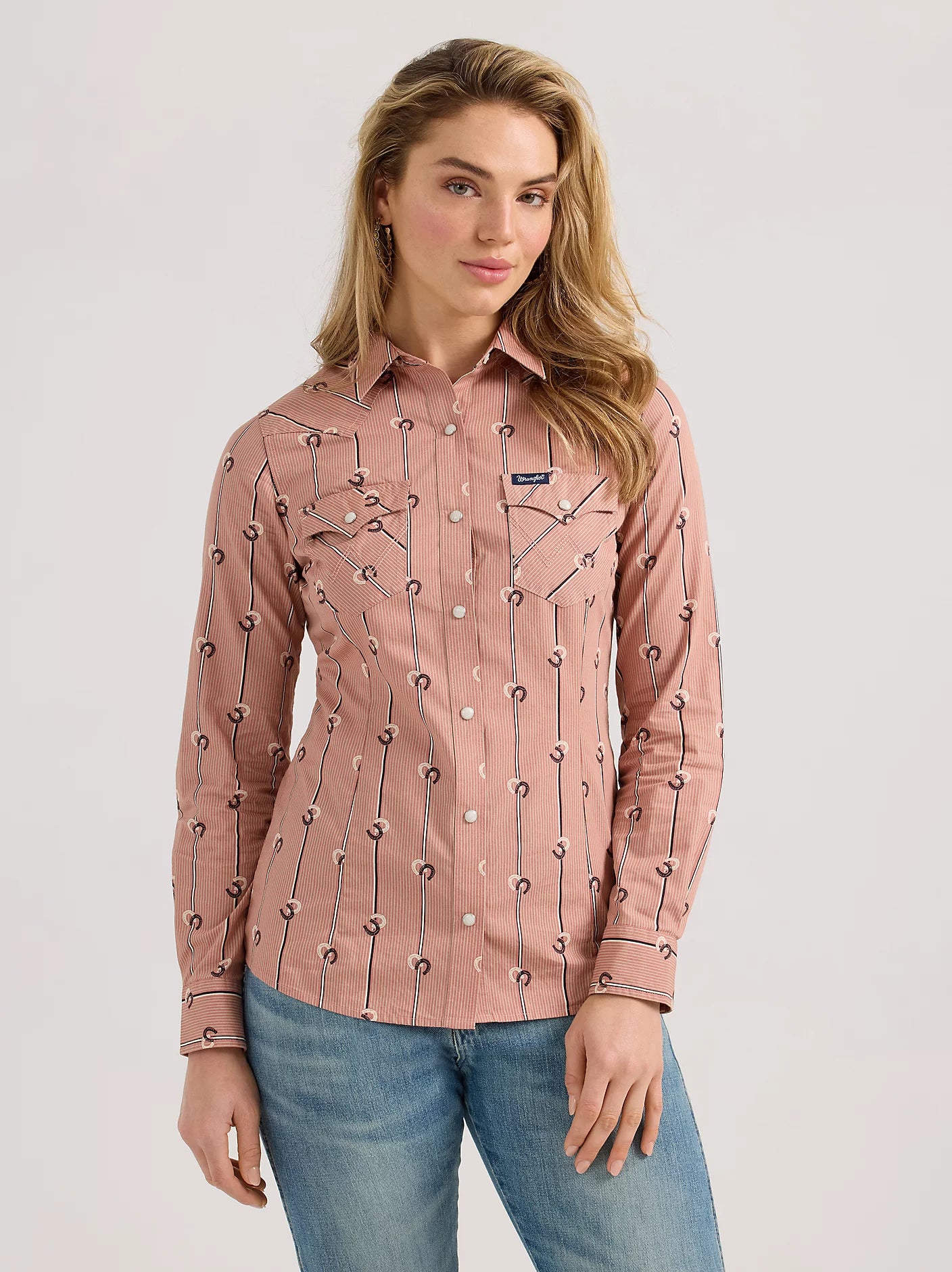 Add a touch of Western style to your outfit with Wrangler Retro® Women's Slim Stripe Western Snap Shirt. Made with pointed front and back yokes, snap flap pockets, and pearl snaps, this shirt offers a subtle tailored fit with a slim silhouette. The perfect finishing touch for any outfit.